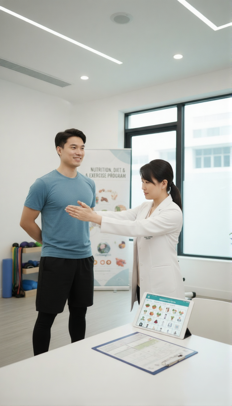 At Family Chiropractic Singapore, our Nutrition, Diet & Exercise program focuses on supporting your spine, muscles, and overall well-being through balanced lifestyle changes. By combining proper nutrition with corrective exercises, we help your body heal faster, move efficiently, and stay resilient.